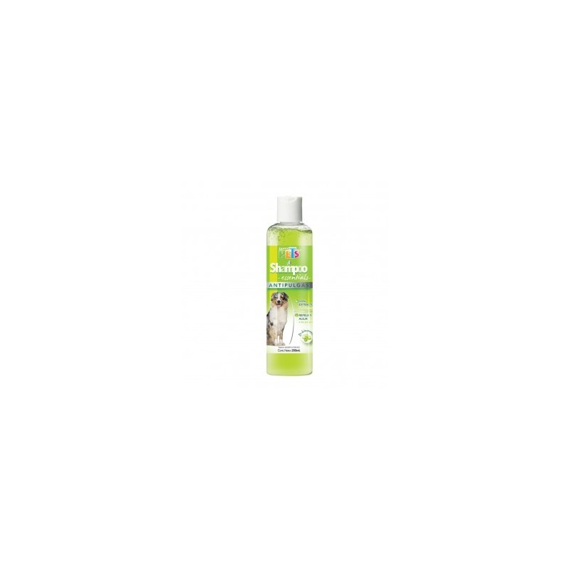 Shampoo antipulgas para perro. Características: El Shampoo Essentials Antipulgas contiene extracto de D-limoneno, que aleja de manera natural pulgas y otros parásitos externos. No irrita la piel de perro. Beneficios: Para todo tipo de pelaje. Mantiene el pelo limpio sin resecarlo. Repele de manera natural pulgas y otros parásitos externos.